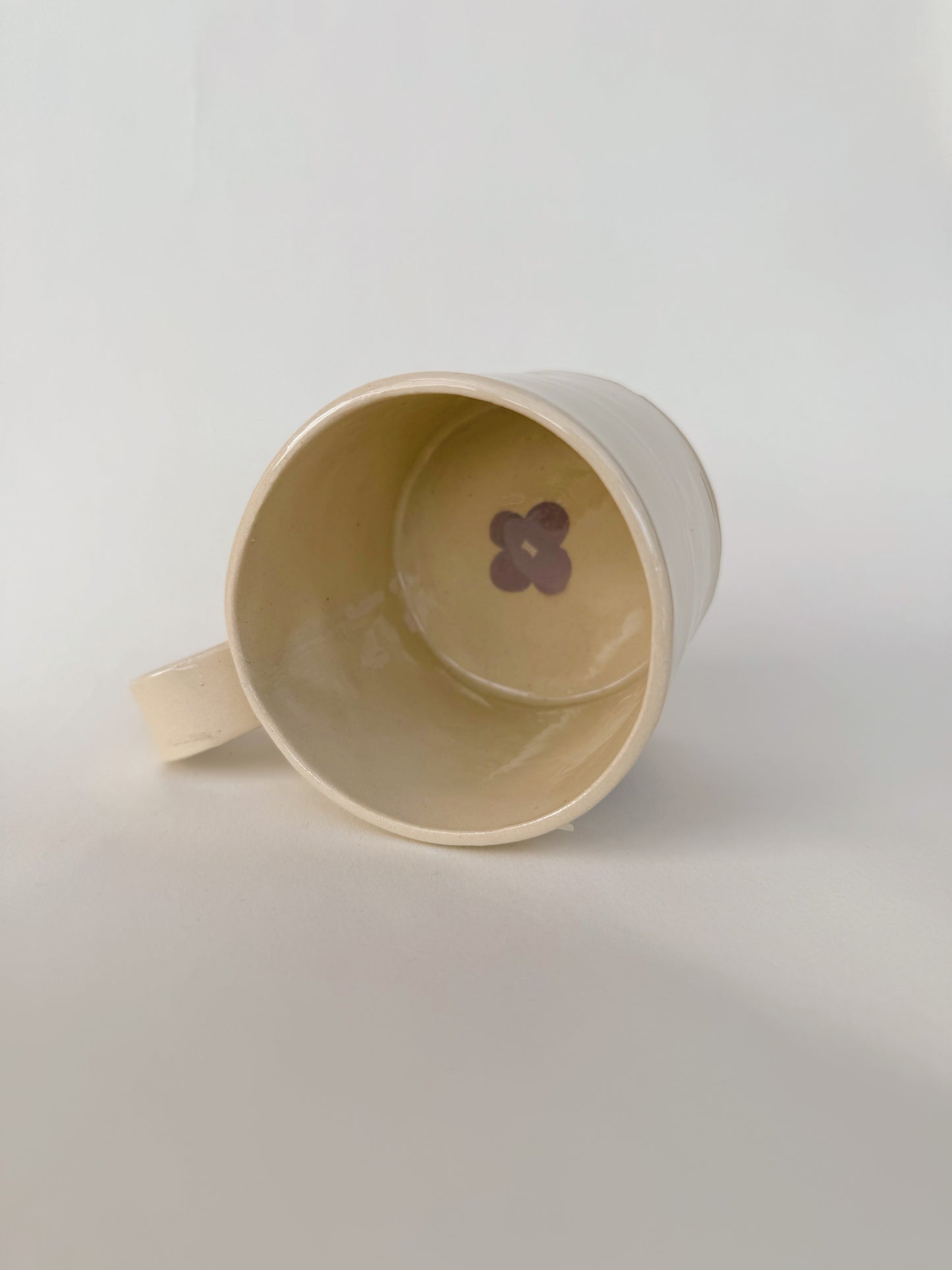 EN/ Handbuilt slab mug made with white stoneware clay. Glazed with glossy transparent glaze.